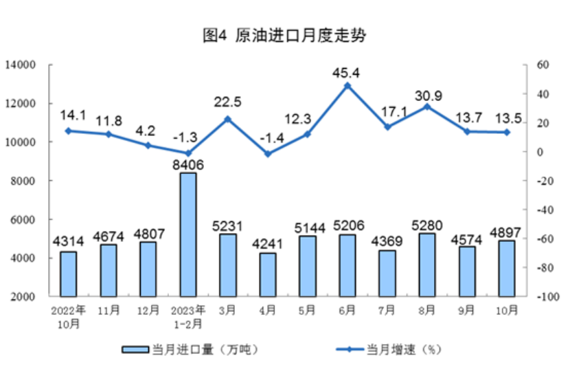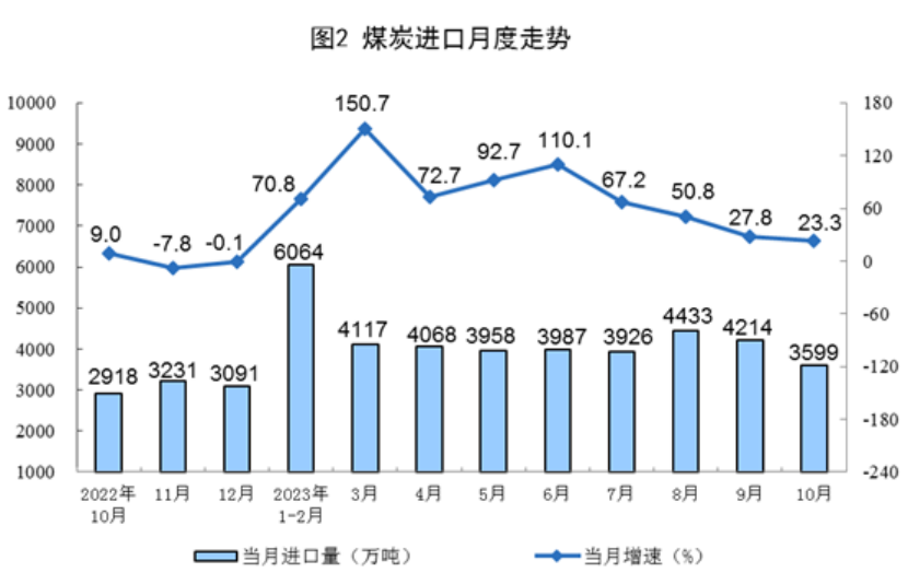 入口数据泉源于海关总署,其中2023年10月份数据为快讯数据。