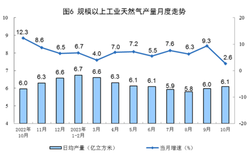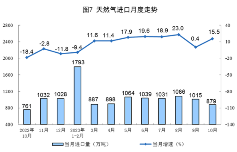110月份,生产自然气1896亿立方米,同比增添6.1%。入口自然气9651万吨,同比增添8.8%。