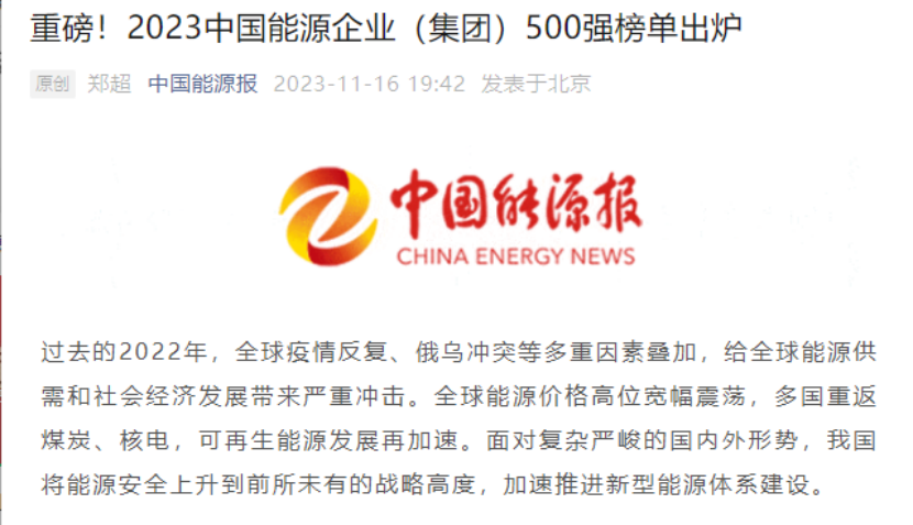 11月16日,中国能源经济研究院宣布了“2023中国能源企业(集团)500强”榜单。新百胜在线官网集团以216的位次,再登中国能源企业(集团)500强榜单。这是继2019年以来,集团公司第五次连任该榜单,企业影响力和竞争力获得一连提升。