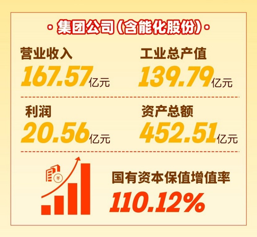 Èý¡¢Ë¢ÐÂÉú³¤»îÁ¦ÏÔÖøÌáÉý¡£Ãª¶¨¡°Èý¸öÏÔ×ÅЧ¹û¡±Ä¿µÄ£¬ÉîÈ뿪չ¹úÆóË¢ÐÂÈýÄêÐж¯£¬Íê³É7¸ö·½Ãæ60ÏîË¢ÐÂʹÃü¡£É¡°ÈýÏîÖÆ¶È¡±Ë¢Ð£¬Íê³É×ܲ¿ºÍ¸÷×Ó¹«Ë¾¶¨±à¶¨¸Ú¶¨Ô±ÊÂÇ飬¼¯ÍŹ«Ë¾×ܲ¿»ú¹¹ÓÉ11¸öÓÅ»¯Îª7¸ö¡¢¹ÜÀíÖ°Ô±¾«¼õΪ51ÈË£¬¼¨Ð§Ð½³êÕ¼±È´ï50%ÒÔÉÏ£¬ÐÂÆ¸ÓùÜÀíÖ°Ô±¾ºÕùÉϸÚ98%ÒÔÉÏ¡£Æô¶¯¼¯ÍŹ«Ë¾Ë¢ÐÂÉÌáÉýÐж¯£¬Öƶ©ÊµÑ鼯»®£¬Ã÷È·9¸ö·½Ãæ42ÏîʹÃü£¬¸÷ÏîÊÂÇéʵÏÖÓÅÒìÆð²½¡£Ê©Õ¹¼¯ÍŹ«Ë¾ÔÚ½¨ÉèÐÂÐÍÄÜÔ´»¯¹¤ÏÖ´ú¹¤ÒµÏµÍ³¡¢¹¹½¨ÐÂÉú³¤ÃûÌÃÖеĿƼ¼Á¢Òì¡¢¹¤ÒµÉú³¤¡¢ÄÜÔ´°ü¹Ü¡¢Çå¾²Ö§³Ö×÷Óã¬ÐÍ¬ÍÆ½øÓÅ»¯¹¤Òµ½á¹¹¡¢¹ÜÀíЧÄÜÌáÉý¡¢¿Æ¼¼Á¢ÒìͶÈëµÈÊÂÇ飬ÖÊÁ¿Ð§Òæ¸ß¡¢Á¢ÒìÄÜÁ¦Ç¿¡¢¹¤Òµ½á¹¹ÓÅ¡¢»îÁ¦¶¯Á¦×ãµÄÏÖ´úÄÜÔ´»¯¹¤¹¤ÒµÍ¶×ʼ¯ÍżÓËÙ¹¹½¨¡£2023Ä꣬¼¯ÍŹ«Ë¾£¨º¬ÄÜ»¯¹É·Ý£©ÊµÏÖÓªÒµÊÕÈë167.57ÒÚÔª¡¢¹¤Òµ×ܲúÖµ139.79ÒÚÔª¡¢×ʲú×ܶî452.51ÒÚÔª¡¢¹úÓÐ×ÊÔ´±£ÖµÔöÖµÂÊ110.12%¡£ÔÚÊ¡ÊôÆóÒµ2022Äê¶È¼¨Ð§ÆÀ¼ÛЧ¹ûת´ïÖУ¬¼¯ÍŹ«Ë¾±»ÆÀΪ¡°ÓÅÒ족µÚÒ»µÈ´Î¡£