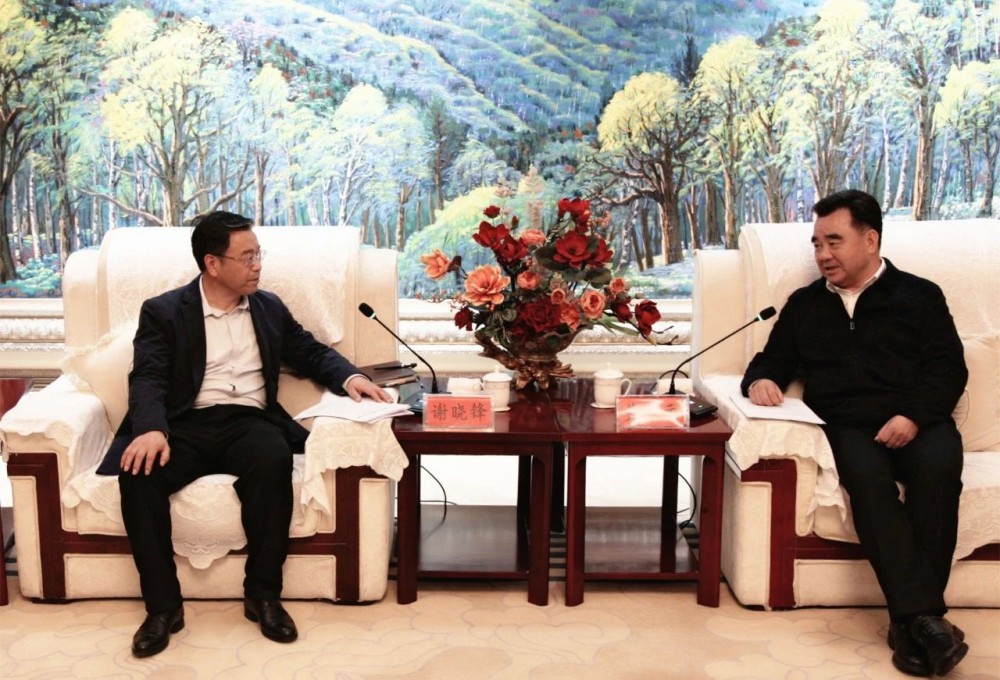 11月1日下昼,新百胜在线官网集团党委书记、董事长谢晓锋,党委副书记、总司理袁崇亮造访了庆阳市委书记黄泽元,市委副书记、市长周继军。双方就进一步牢靠深化地企合作关系,协同推动相关重点项目建设、增进地企高质量生长等事宜举行座谈交流。庆阳市委常委、市委秘书长张鸿举,市委常委、常务副市长刘长发,新百胜在线官网集团党委常委、副总司理王志民出席座谈会。