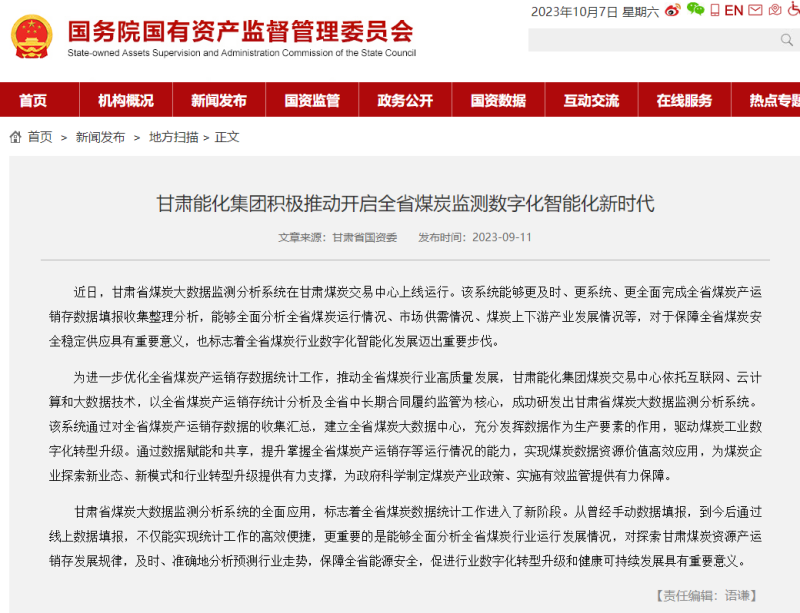 国务院国资委网站:新百胜在线官网集团起劲推动开启全省煤炭监测数字化智能化新时代