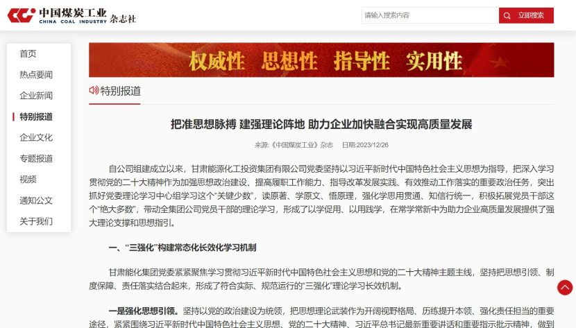 三是拓宽平台渠道,在学习载体纳新上跟进。自动顺应媒体融合生长趋势,依托企业网站、微信公众平台,开发“在习近平新时代中国特色社会主义头脑指引下”、党史学习教育、深入开展学习贯彻习近平新时代中国特色社会主义头脑主题教育、“三抓三促”行动、时政要闻、学习园地等专题专栏,即时更新宣布学习内容,推动了党的立异理论飞入寻常黎民家;依托“学习强国”“甘肃党建”、干部网络培训和企业“两网一微”平台,通过健全学习组织架构、制订平台学习管理制度、指定专人管理统计等形式,搭建了线上竞相学习的优异气氛。