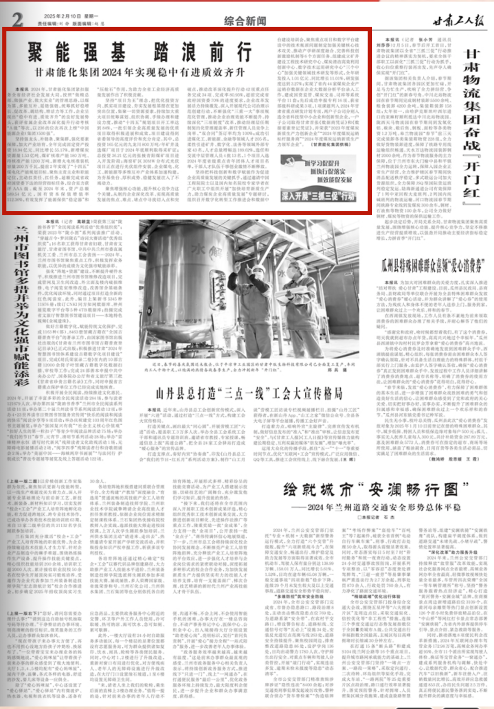 2月10日,甘肃工人报刊登了《聚能强基 踏浪前行——新百胜在线官网集团2024年实现稳中有进质效齐升》文章。