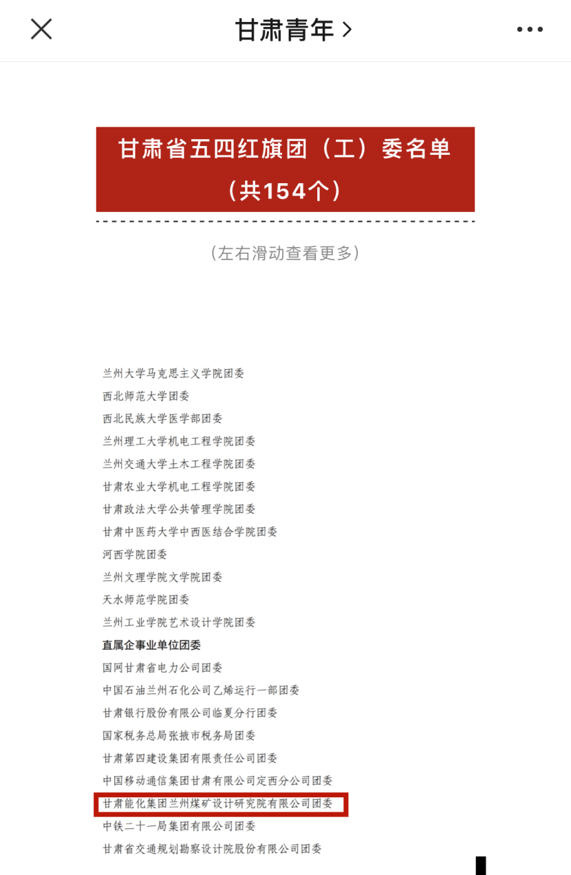 克日,在甘肃省宣布的2022—2023年度“两红两优”转达表扬名单中,兰煤院公司团委获得共青团甘肃省委2022-2023年度“甘肃省五四红旗团委”声誉称呼。