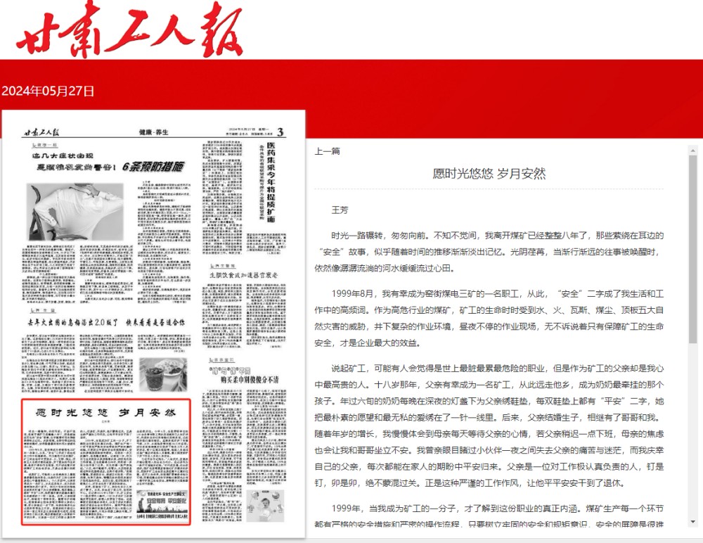 Ìá¼°¿ó¹¤£¬¿ÉÄÜÓÐÈË»áÒÔΪÊÇÊÀÉÏ×îÔà×îÀÛ×îΣÏÕµÄÖ°Òµ£¬¿ÉÊÇ×÷Ϊ¿ó¹¤µÄ¸¸Ç×È´ÊÇÎÒÐÄÖÐ×î¸ßÉеÄÈË¡£Ê®°ËËêÄÇÄ꣬¸¸Ç×ÓÐÐÒ³ÉΪһÃû¿ó¹¤£¬ÒÔºóÔ¶×ßÒìÏ磬³ÉΪÄÌÄÌ×îÐüÄîµÄËÈ˺¢×Ó¡£Äê¹ýÁùÑ®µÄÄÌÄÌÿÍíÔÚÉîÒ¹µÄµÆÕµÏÂΪ¸¸Ç×ÐåЬµæ£¬Ã¿Ë«Ð¬µæÉ϶¼ÓС°Æ½°²¡±¶þ×Ö£¬Ëý°Ñ×îÖÊÆÓµÄÔ¸ÍûºÍ×îÎÞ˽µÄ°®ÐåÔÚÁËÒ»ÕëÒ»ÏßÀï¡£ØÊºó£¬¸¸Ç×Íê»éÉú×Ó£¬Ïà¼ÌÓÐÁ˸ç¸çºÍÎÒ¡£Ëæ×ÅÄêËêµÄÔöÌí£¬ÎÒÖð²½Ìå»áµ½Ä¸Ç×ÌìÌìÆÚ´ý¸¸Ç×µÄÐÄÇ飬Èô¸¸Ç×ÉÔ³ÙÒ»µãϰ࣬ĸÇ׵Ľ¹ÂÇÒ²»áÈÃÎҺ͸ç¸ç×øÁ¢µ£ÐÄ¡£ÎÒÔøÇ×ÑÛÑÛ¼û¹ýС»ï°éÒ»Ò¹Ö®¼äʧȥ¸¸Ç×µÄÍ´¿àÓëÃì㣬¶øÎÒÇìÐÒ×Ô¼ºµÄ¸¸Ç×£¬Ã¿´Î¶¼ÄÜÔÚ¼ÒÈËµÄÆÚÅÎÖÐÆ½°²¹éÀ´¡£¸¸Ç×ÊÇһλ¶ÔÊÂÇ鼫ÈÏÕæÈÏÕæµÄÈË£¬¶¤ÊǶ¤£¬Ã®ÊÇ¾ø²»ÃÉ»ì¹ý¹Ø¡£ÕýÊÇÕâÖÖÑϽ÷µÄÊÂÇé×÷·ç£¬ÈÃËûƽƽ°²°²¸Éµ½ÁËÍËÐÝ¡£